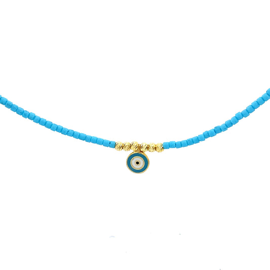 Baby Blue Gold-Plated Evil Eye Bead Necklace