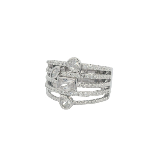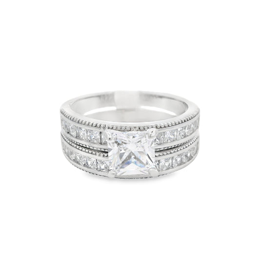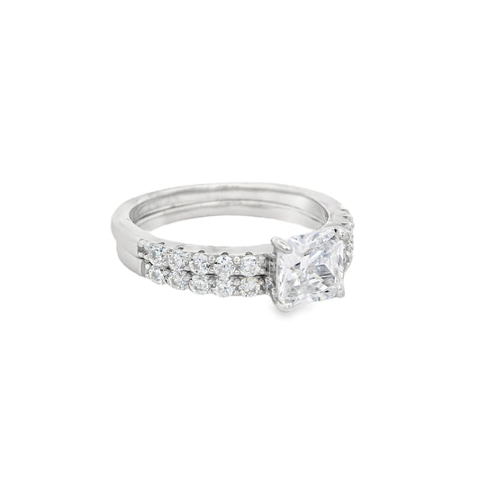 Silver Princess-Cut Zirconia Bridal Ring Set with Pavé Accents