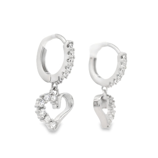 Silver Heart Dangle Huggie Hoop Earrings with Pavé Zirconia